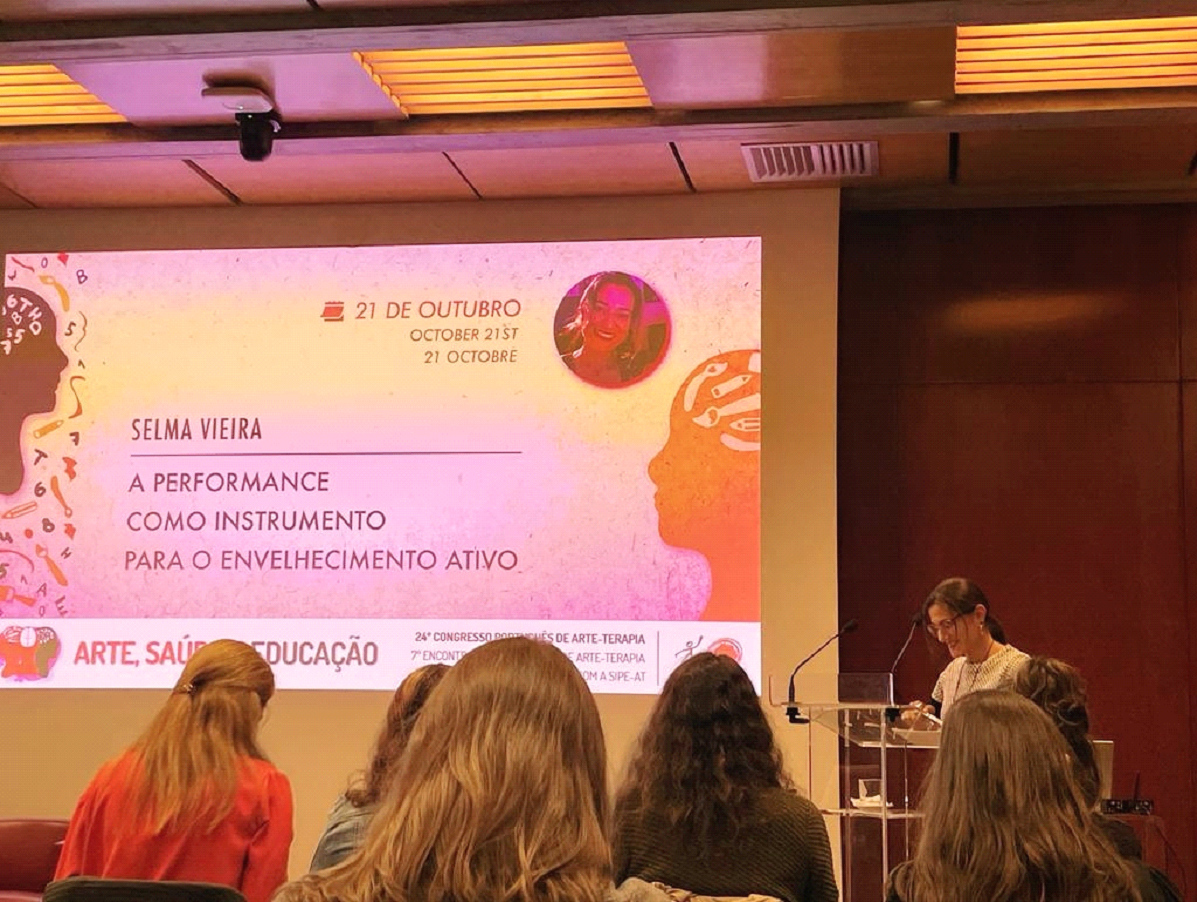 Selma trindade na apresentação da palestra no ?24º Congresso Português de Arte-Terapia?, na Fundação Calouste Gulbenkian, em Portugal